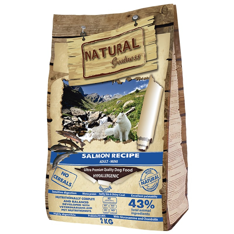 Hrană completă pentru câini adulți - Rase mici și medii![]() Compoziție: Somon deshidratat (20%), Cartofi, Somon proaspăt (10%), Proteină din cartofi, Ulei de pui (9,5%), Drojdie, Pulpă de sfeclă, Hidrolizat de somon (2%), Ulei de somon (1,5%), Semințe de in, Substanțe minerale, Glucozamină 650 mg/kg, Cicoare, Manan-oligozaharide, Extract de citrice (grepfruit, portocală, mandarină și bergamotă), Condroitină 150 mg/kg, Yucca schidigera. Analiză nutrițională: Proteine brute (28,5%), Uleiuri și grăsimi brute (16,5%), Fibre brute (2,5%), Cenușă brută (7,5%), Calciu (1,1%), Fosfor (0,8%), Acizi grași Omega 3 (0,9%), Acizi grași Omega 6 (2,7%). Energie metabolizabilă: 3.880 kcal/kg. Format: 2 kg Recomandare de hranire : ![]() |