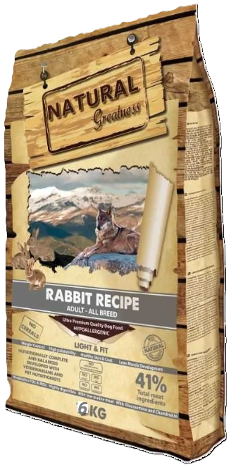 Hrana ultrapremium, monoproteică cu carne de iepure, hipoalergenică, fără cereale, pentru câini adulți, sterilizați, seniori,supraponderali de talii medii&mari Nat Great Med&Large Rabbit 6kg